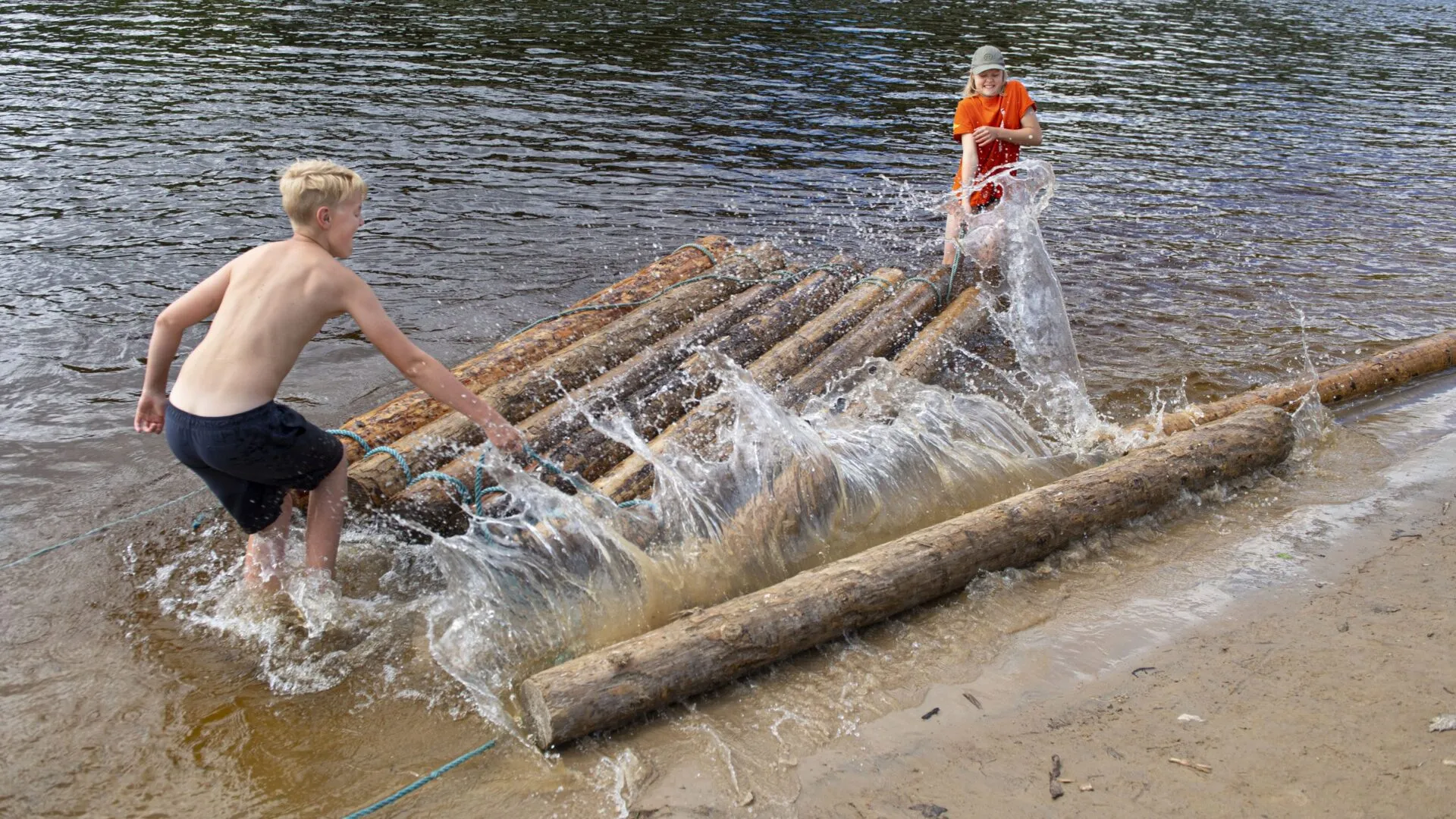 Der Bau eines eigenen Holzfloßes aus Stämmen und Seilen ist ein entscheidender und wichtiger Teil Ihres Erlebnisses auf dem Klarälven!