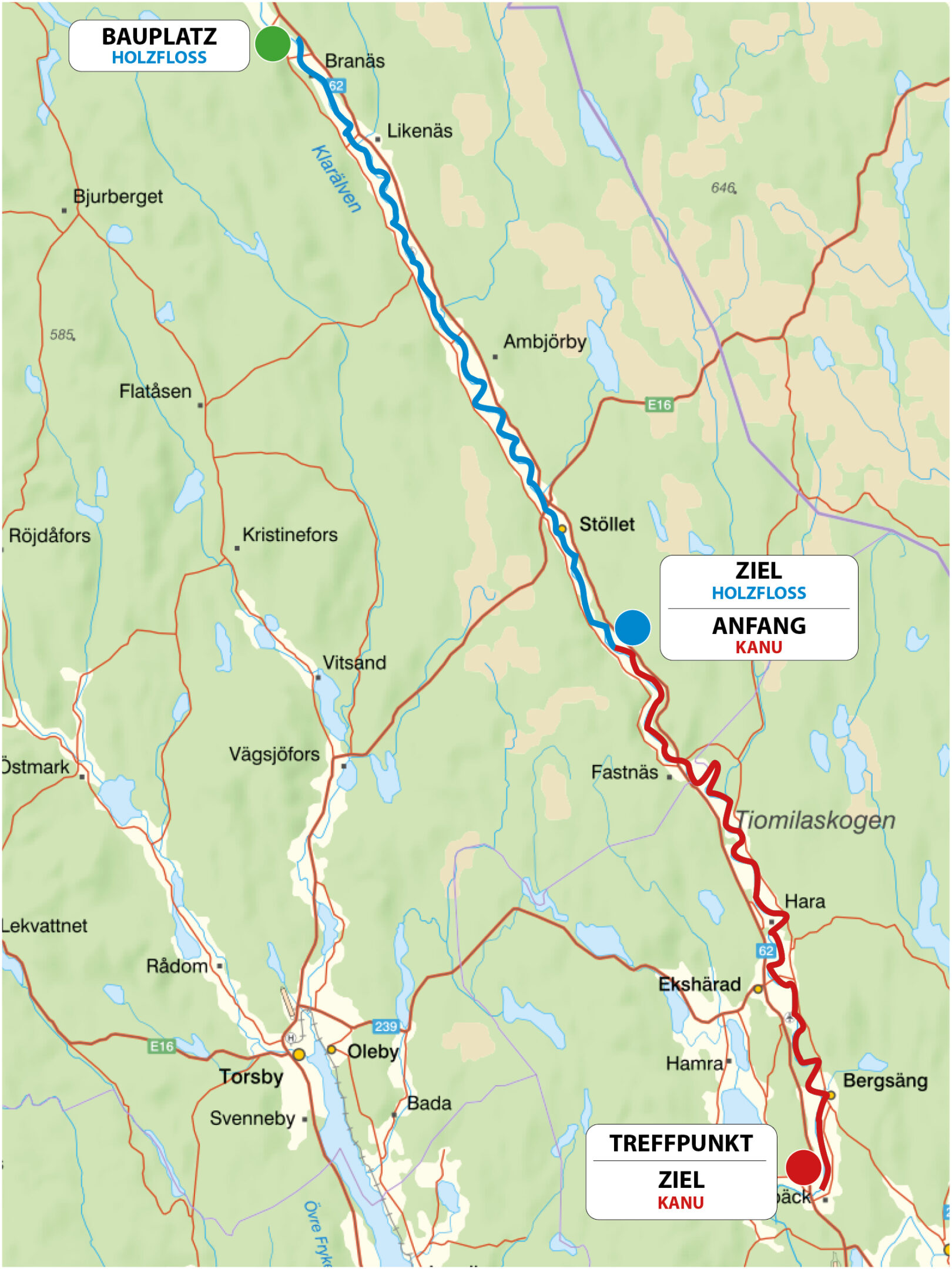 Der Transport von Ihnen und Ihrem Gepäck (jedoch keine großen privaten Gegenstände wie Kanus, Fahrräder, Kühlschränke u.ä. – versuchen Sie, Ihr Gepäck zu minimieren!) von Gunnerud zum Bauplatz ist in der Grundausrüstung enthalten. Während Sie mit dem Holzfloß und Kanu auf dem Klarälven unterwegs sind, können Sie Ihr eigenes Fahrzeug ohne weitere Kosten am Zielort in Gunnerud parken.